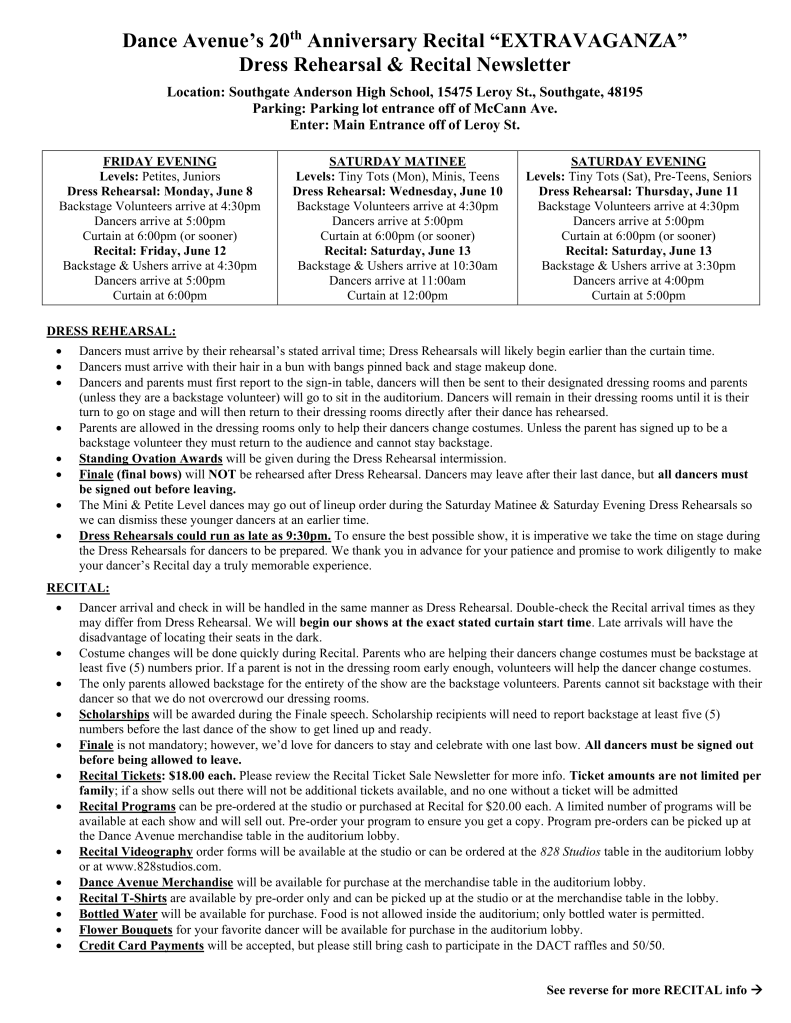Please make sure you know which Recital your dancer is performing in: